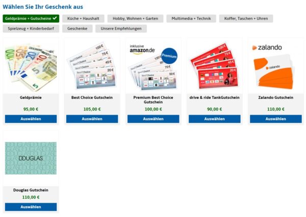 Diese Prämien stehen zum Beispiel zur Auswahl: