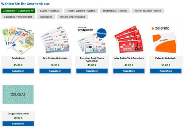 Diese Prämien stehen zum Beispiel zur Auswahl: