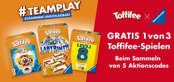 - Toffifee x Ravensburger: 5 Aktionspackungen kaufen und gratis Spiel sichern