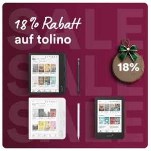 Auch die anderen eReader sind mit dem Rabattcode günstiger: tolino shine, tolino shine color, tolino vision 6, tolino vision color oder tolino stylus in den Warenkorb legen und mit dem Code 18TOLINO 18% sparen.