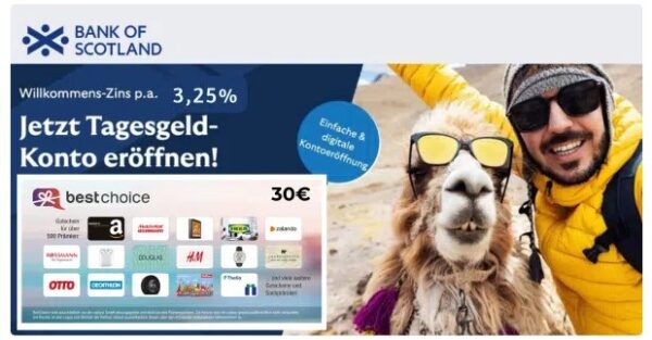 - 30€ BestChoice/Amazon.de Gutschein fürs Bank of Scotland Tagesgeld