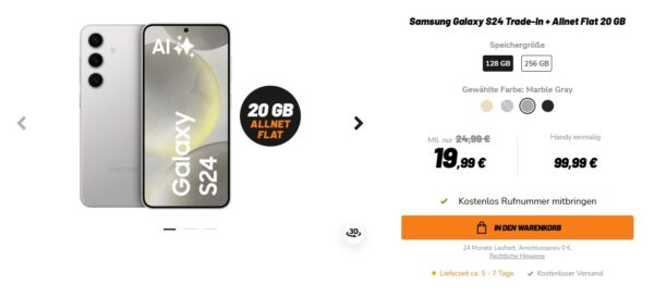 Stark, bei klarmobil bekommt ihr das Samsung Galaxy S24 + 20GB LTE + Alles-Flat im Telekom-Netz für 19,99€/Monat
