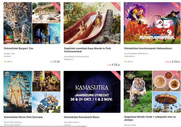 Beim niederländischen Dealanbieter Tripper gibt es aktuell eine Rabattaktion auf alle Freizeitpark-Tickets. Ihr spart 2,50€ auf euren Einkauf, d.h. aufs erste Ticket. Der Gutschein gilt einmal pro Account.