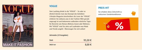 - Jahresabo VOGUE für 8€ statt 95,50€