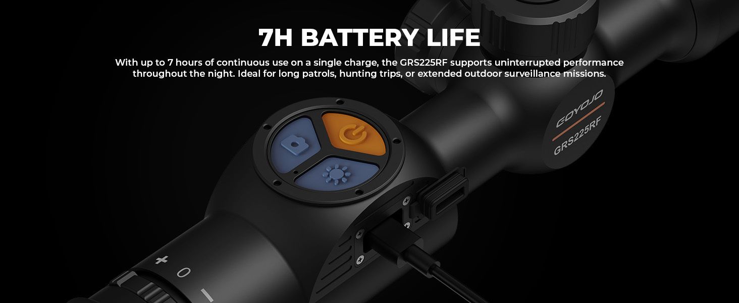 Der Hochleistungsakku ermöglicht über 7 Stunden Dauerbetrieb und bewältigt mühelos lange Jagdausflüge, Nachtpatrouillen oder Outdoor-Überwachung.