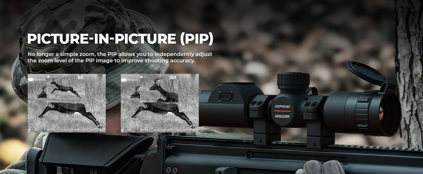 - PIP-Modus (Picture-in-Picture): Gleichzeitige Anzeige von Haupt- und Zoom-Bild für optimale Zielerkennung.