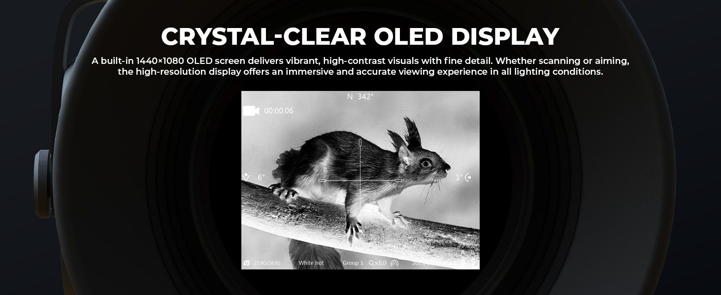 Das eingebaute 1440×1080 OLED-Display liefert brillante, kontraststarke Bilder mit gestochen scharfen Details – egal ob beim Scannen oder Anvisieren, bei jedem Licht.