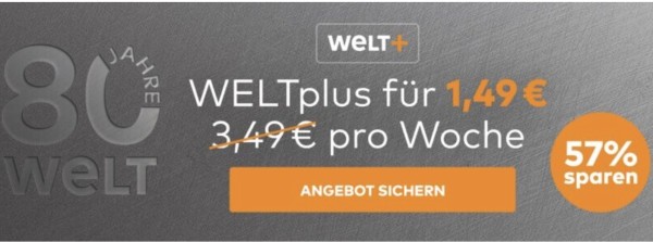 WELTplus im Abo für wöchentlich 1,49€ statt 3,49€ (im Jahresabo)