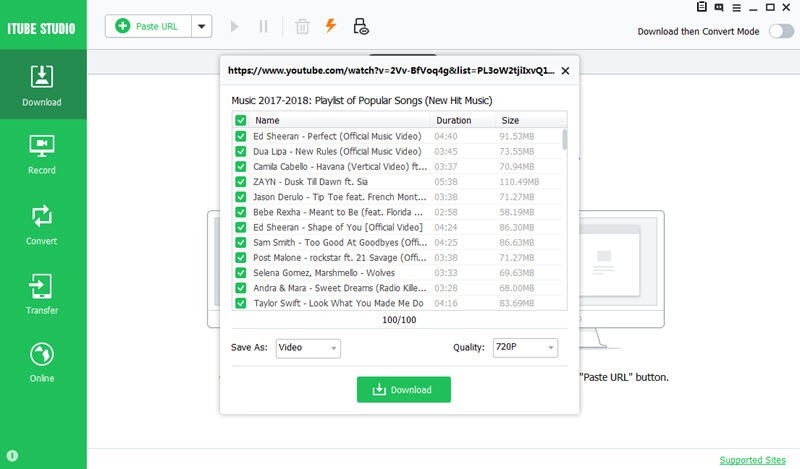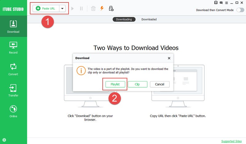 Now, go to iTube Studio interface and then hit on the ‘Download’ tab over the left panel. Tap on the ‘Paste URL’ button now. iTube Studio will recognize the YouTube playlist videos and prompt you for confirmation. Confirm it to begin the download.