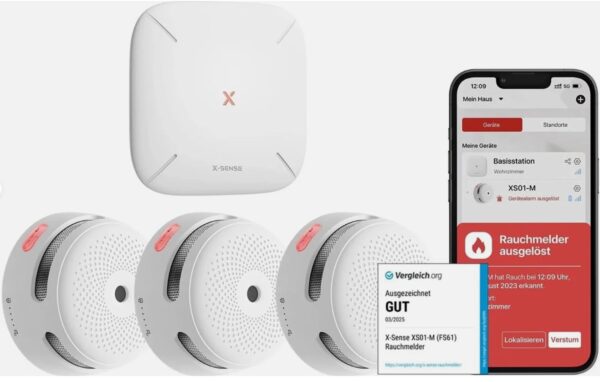 Ein herkömmlicher Rauchmelder piept, wenn es brennt – aber was bringt euch das, wenn ihr gerade im Büro oder im Urlaub seid? Das X-Sense Smart Rauchmelder Set löst genau dieses Problem. Durch die mitgelieferte SBS50 Basisstation werden die Melder in euer WLAN eingebunden. Sobald einer der Melder Rauch erkennt, schlagen alle Alarm (Vernetzung) und ihr erhaltet sofort eine Push-Benachrichtigung auf euer Smartphone.