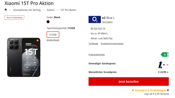 Bei MediaMarkt bekommt ihr das Xiaomi 15T Pro + 80GB 5G + Alles-Flat im o2-Netz für 24,99€/Monat