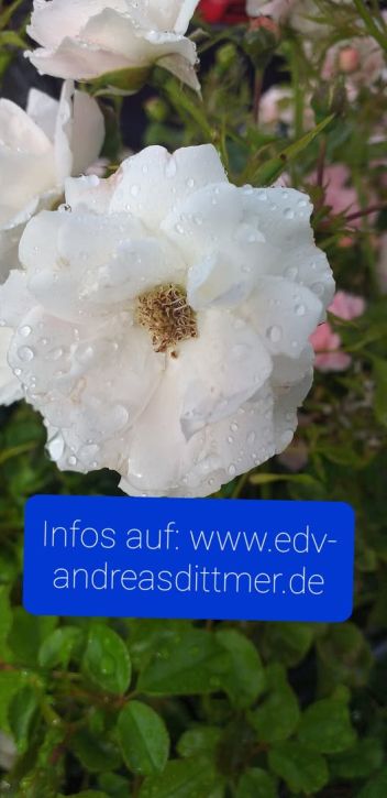 Die Regentropfen auf der Blume sehen gut aus.