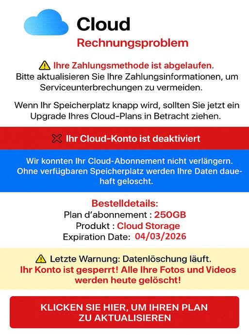 VORSICHT VOR DIESER PHISHING-MAIL☝️ Absender nennt sich "Cloud team"☝️