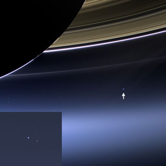 Der Pfeil zeigt auf unsere Erde