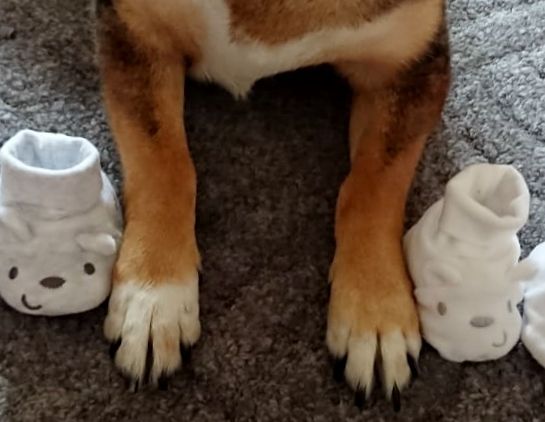 Die Schuhchen bekommt aber nicht der Hund angezogen,oder?