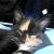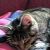 Und nochmal Marron, an die Beine meines Plüschelefanten gekuschelt (07.07.05)