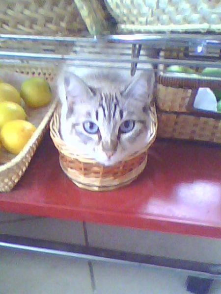 Es gibt keine zu kleine Schachtel oder Korb für Katzen xD