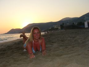 Eine schöne Frau bei einem schönen Sonnenuntergang am Strand