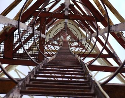 Der Weg rauf! Der Turm, an mehreren Stellen durchgerostet und von großen bösen schwarzen Vögeln bewohnt. :P