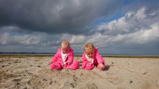 Phantastische Aufnahme! Weiß gar nicht, was mehr auf mich wirkt, die gewaltigen Wolken am Himmel, die Rosa-Strampler, oder die zwei Wonnenproppen, die sich absolut nichts daraus machen, was um sie herum grade geschieht.. Wundervoll gemacht!
