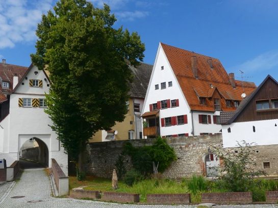 Lauingen (Donau), Schwaben, Tränktor (li.), Stadtmauer