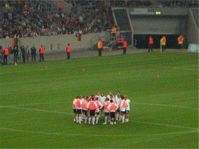 Teambesprechung auf engstem Raum, da 42.200 Menschen doch recht laut sein können ^^