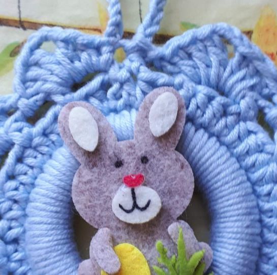 Dekoration Osterhase-Anhänger gehäkelt und verziert.