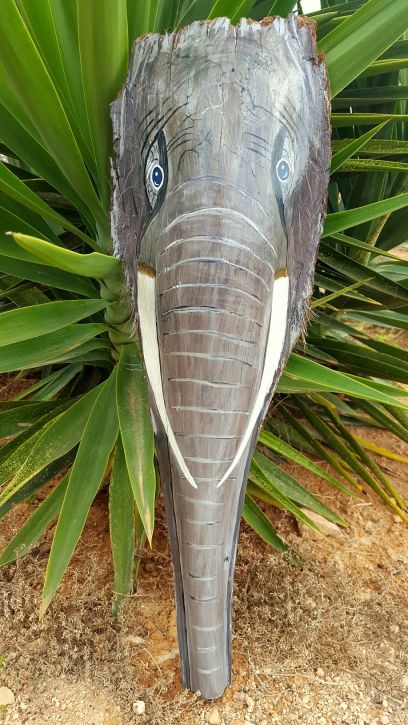 Sieht aus als wäre der Elefant aus einer Baumrinde gemacht.