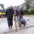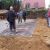 Die Höhe der Fundamentplatte wird erreicht und die Erde verdichtet.