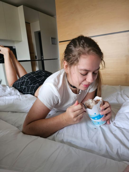 Das scheint zu schmecken. Leider kann ich nicht sehen was da so lecker ist.