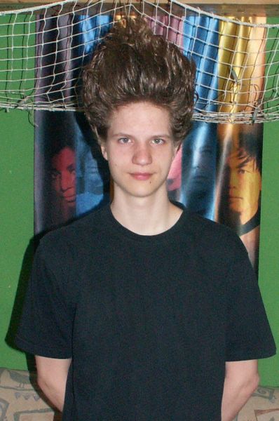 Vor dem Orangetönen Haare nach oben gesprayt. Habe mich Kopfüber vom Hochbett hängen lassen XD
