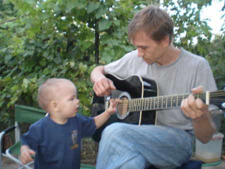 Das Foto ist ja schon älter. Ich wüsste gerne ob der Zwerg immer noch Interesse an der Gitarre hat.