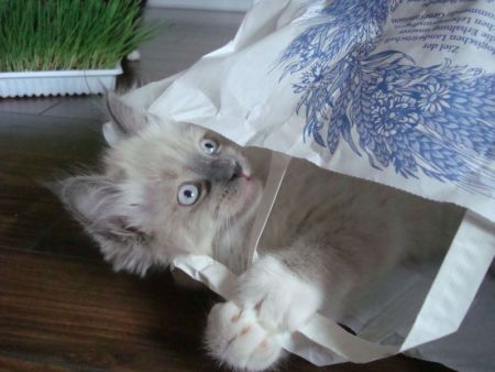 Stell den Katzen eine Tüte, einen Einkaufskorb oder einen Karton hin ... und schwupps sind sie drin. Mein Kater ist sogar schon mal in eine leere Chipstüte gekrochen - als er noch ganz klein war :-)