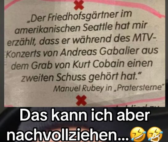 Echt seltsam, denn Cobain hat gar kein Grab, sondern wurde eingeäschert und die Asche seiner Witwe 2008 gestohlen