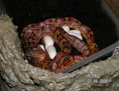 Meine Kornnatter "Sandy" beim Eier legen (15 insgesamt)