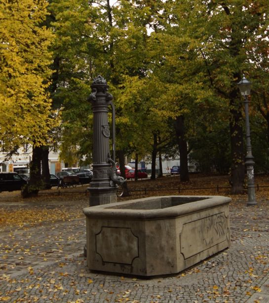 Die letzte Ihrer Art dank Denkmalschutz (mein Job) mit Becken, ohne gibt es noch einige wenige Strassenpumpen mit Schutzstatus in Berlin. Diese am Arkonaplatz ist eine der 3 schönsten.