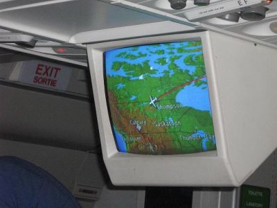 der monitor zeigt calgary ist nicht mehr weit.
