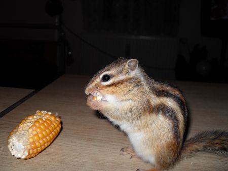 Was für ein süßes Streifenhörnchen! Aber die haben spitze Zähne, mich hat mal eins gebissen :-)