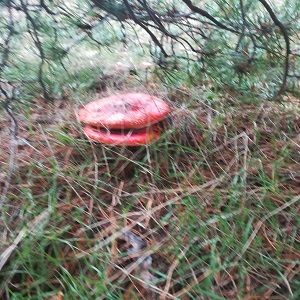 Von Pilzen verstehe ich überhaupt nichts. Aber ich glaube, dass auch hierbei die Faustformel gilt: Rot signalisiert Gefahr. Also essen würde ich den nicht.