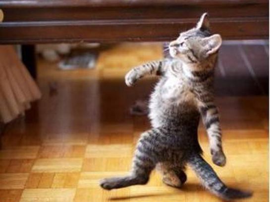 Guck die Katze tanzt allein, tanzt und tanzt auf einem Bein ))