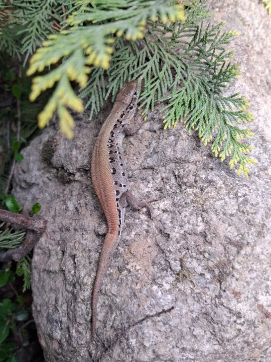 Solche Besucher haben wir auch, manche sind nur 7 bis 8 cm. groß und mehr grau, diese hier ist etwa 12 cm lang gewesen.