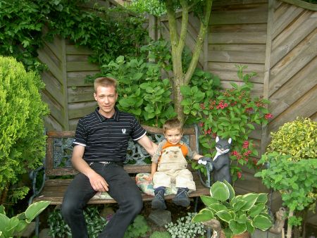Papa und Kevin im Garten