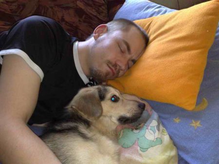 So ist es oft zu sehen. Der Max passt auf, dass ich beim schlafen nicht von der Couch falle ;)
