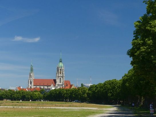 Theresienwiese + Bavariaring (Allee) vpr St.-Pauls-Kirche (Neogotik), München