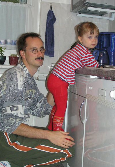 Jessica beim Aufwaschen ihres Abendbrottellers. Der Kindergarten hinterläßt Wirkung - Klassse was?