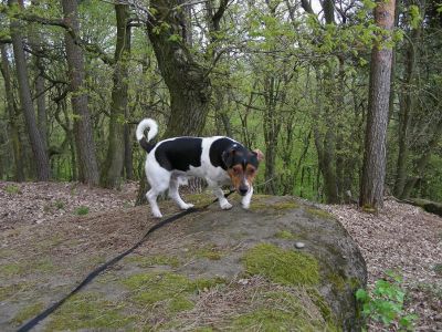 Ist das seine Leine? Nee, oder? Gibt es mittlerweile schon die Auflage, dass Hunde im Wald angeleint sein müssen?