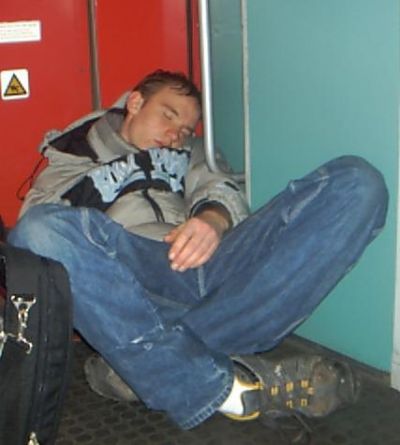 War kein Platz mehr damals im Zug, also haben rico und ich dort vor der tür gepennt.. :D