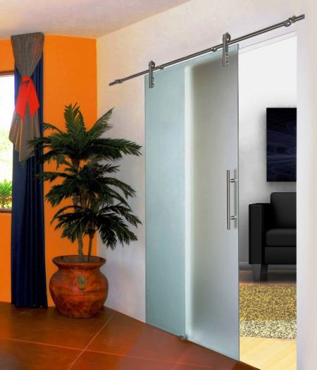 Glas-Schiebetür mit ESG und hochwertigen V4A Edelstahlbeschlägen. Diese Schiebetür aus Glas gibt es in vielen Varianten und Maßen. Die Glasschiebetür auf dem Foto ist in der Ausführung: satiniertes ESG und mit einem Langgriff aus Edelstahl versehen
