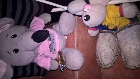 Kiki Maus und ihre Schokolade...die gibt keinem was davon ab ..NIE ...klein Diddi ,mit Riesenpatschen bekleidet,guckt schon ganz traurig :(
