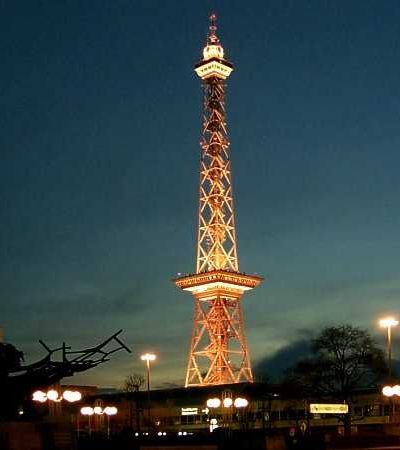 Berliner Funkturm am Messegelände bei Nacht